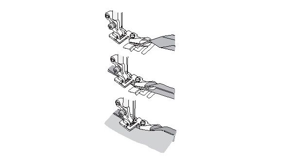 Zum 6 mm breiten Einfassen von Kanten. Verwenden Sie 24 mm breites Schrägband aus dünnem Stoff oder ein fertig gefaltetes Schrägband. Geradstich mit Stichlänge 2,5, Zickzackstich oder einen Zierstich mit gewünschter Stichlänge einstellen.