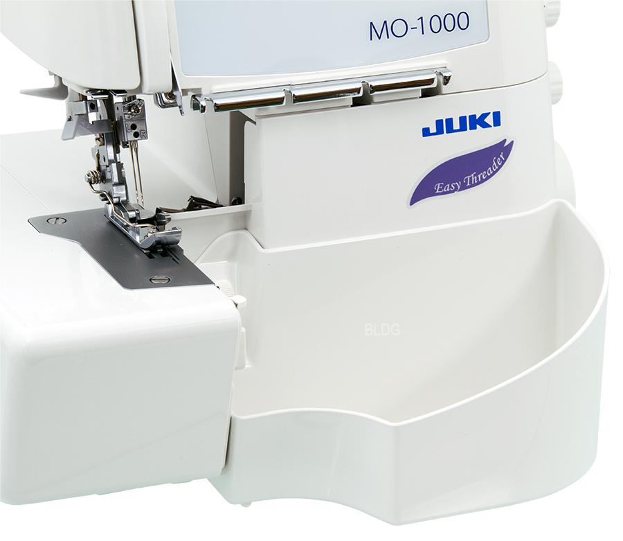 Der optionale Abfallbehälter sorgt für Ordnung am Nähplatz. Schnell und einfach ist der Sammelbehälter für Schneide- und Garnreste angebracht.