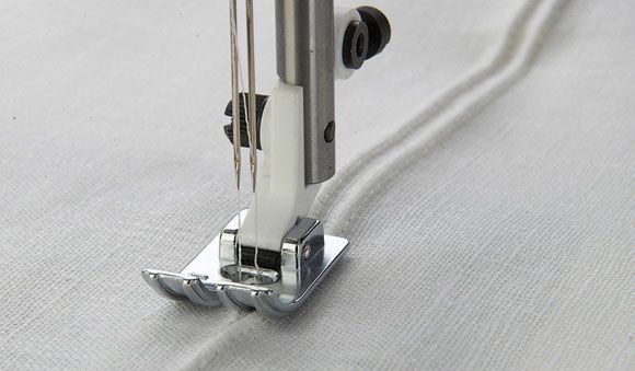 Zum schnellen Nähen von Biesen in dünne bis normale Stoffe. Es wird mit einer Zwillingsnadel und Geradstich mit Stichlänge 2,5 genäht.