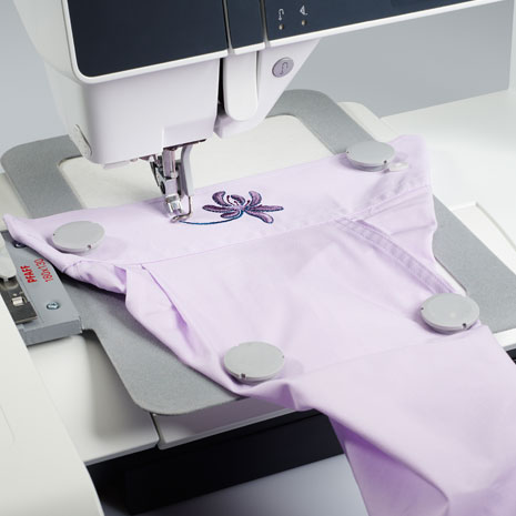 Manche Stoffe sind schwerer einzuspannen als andere – und wieder andere sollten am besten gar nicht erst eingespannt werden, da evtl. Rahmenabdrücke verbleiben. Schwere und grobe Stoffe stellen dabei oft eine ebenso große Herausforderung dar wie dünne und glänzende Stoffe. Auch fertige Kleidungsstücke mit ihren fertigen Nähten, engen Ärmeln, Knopfleisten und Knöpfen usw. lassen sich manchmal nicht so leicht einspannen. Das alles ist mit dem Metal Hoop 180 x 130 mm leichter denn je! Er ist perfekt für Stick- oder Quiltprojekte, bei denen Sie keine Vliesreste auf der Rückseite wünschen! Denn Sie sticken einfach ohne Vlies. Praktisch: Sie sticken einfach mehrere Designs nacheinander oder entscheiden sich für Endlosstickereien – nehmen Sie einfach die Magnete ab und schieben Sie den Stoff weiter. Schon können Sie sich ans nächste Motiv machen!