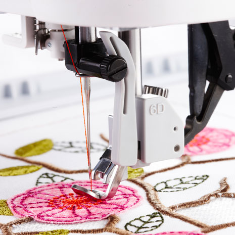 Der Dynamischer-Sprung-Fuß ist speziell zum Sticken und Freihandnähen vorgesehen. Dank seiner Konstruktion bietet er größtmögliche Sicht, sodass Sie einfach Freihandnähen oder einem Muster auf dem Stoff folgen können. Die Sprungfunktion sorgt dafür, dass sich der Stoff beim Nähen nicht mit der Nadel nach oben und unten bewegt und ermöglicht Ihnen somit eine bessere Kontrolle.
