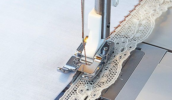 Zum Führen beim Absteppen, zum Annähen von Spitzen und Bändern an Kanten und zum Zusammennähen zweier Zierdetails.