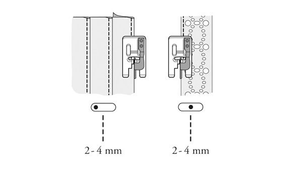 Kantensteppfuß mit Lineal in der Mitte