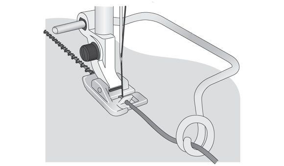 Führt dem Litzenfuß, dem Kordelfuß oder dem Kordonierfuß Borten, Bänder und Kordeln zu.