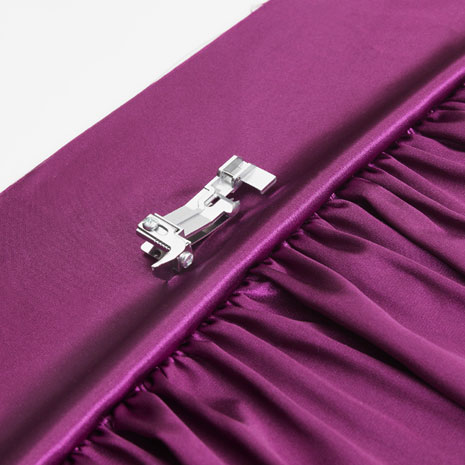 Der Kräuselfuß eignet sich perfekt für das gleichzeitige Nähen und Kräuseln von bis zu zwei Stofflagen (die untere Stofflage wird dabei gekräuselt und die obere bleibt glatt). Für dünne und mitteldicke unelastische Stoffe.
