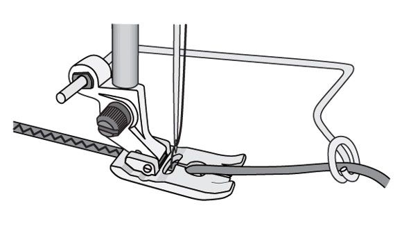 Zum Annähen von Litze oder Zierband. Nach Bedarf mit Vlies unterlegen. Mit Geradstich, Stichlänge 2,5, oder Zickzackstich, Stichlänge 2 bis 4 nähen; die Stichbreite muss groß genug sein, um die Litze zu überstechen. Besonders schöne Effekte erhalten Sie wenn Sie einen Zierstich wählen.
