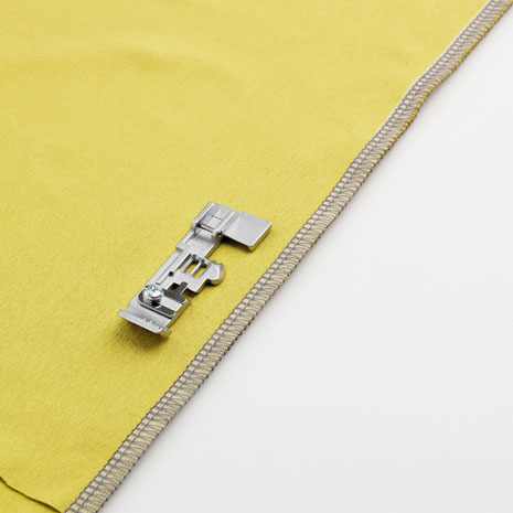 Der Nahtbandfuß wird zum Verstärken von Nähten mit Nahtbändern verwendet, um ein Überdehnen zu verhindern. Er eignet sich besonders für Schulternähte. Mit diesem Nähfuß werden Nähte in einem Arbeitsgang genäht und verstärkt.